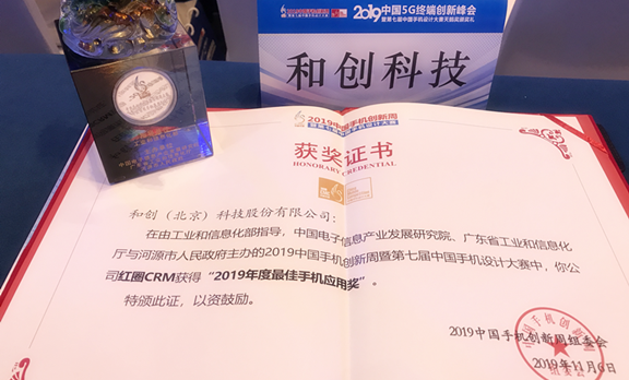 "紅圈CRM"榮獲2019中國5G終端創新峰會“2019最佳手機應用天鵝獎”