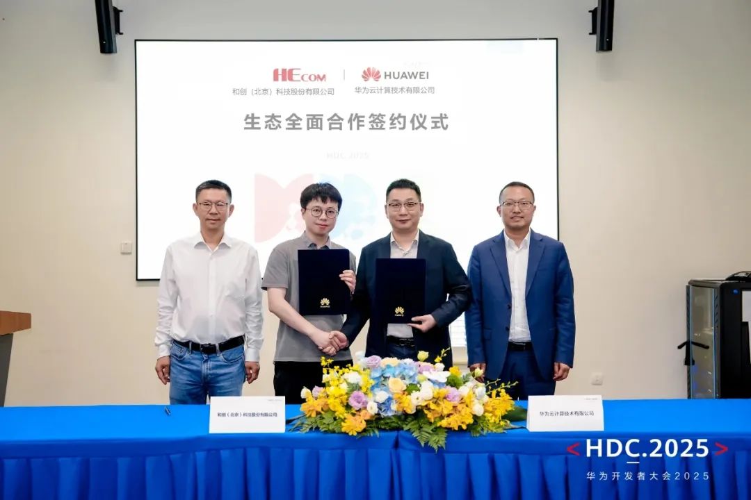 在2025華為開(kāi)發(fā)者大會(huì)期間,和創(chuàng)(北京)科技股份有限公司(以下簡(jiǎn)稱(chēng)“和創(chuàng)科技”)與華為云計(jì)算技術(shù)有限公司(以下簡(jiǎn)稱(chēng)“華為云”)簽署生態(tài)全面合作協(xié)議,雙方將在聯(lián)合解決方案構(gòu)建、AI應(yīng)用開(kāi)發(fā)及行業(yè)大模型共創(chuàng)等領(lǐng)域展開(kāi)全方位合作,共同推動(dòng)新一代人工智能產(chǎn)品在工程行業(yè)的應(yīng)用落地。在和創(chuàng)科技CEO劉學(xué)臣、華為云生態(tài)發(fā)展與運(yùn)營(yíng)部部長(zhǎng)陶志強(qiáng)的共同見(jiàn)證下,和創(chuàng)科技副總裁王禹、華為云北京云生態(tài)發(fā)展與運(yùn)營(yíng)部部長(zhǎng)代表雙方完成簽約。