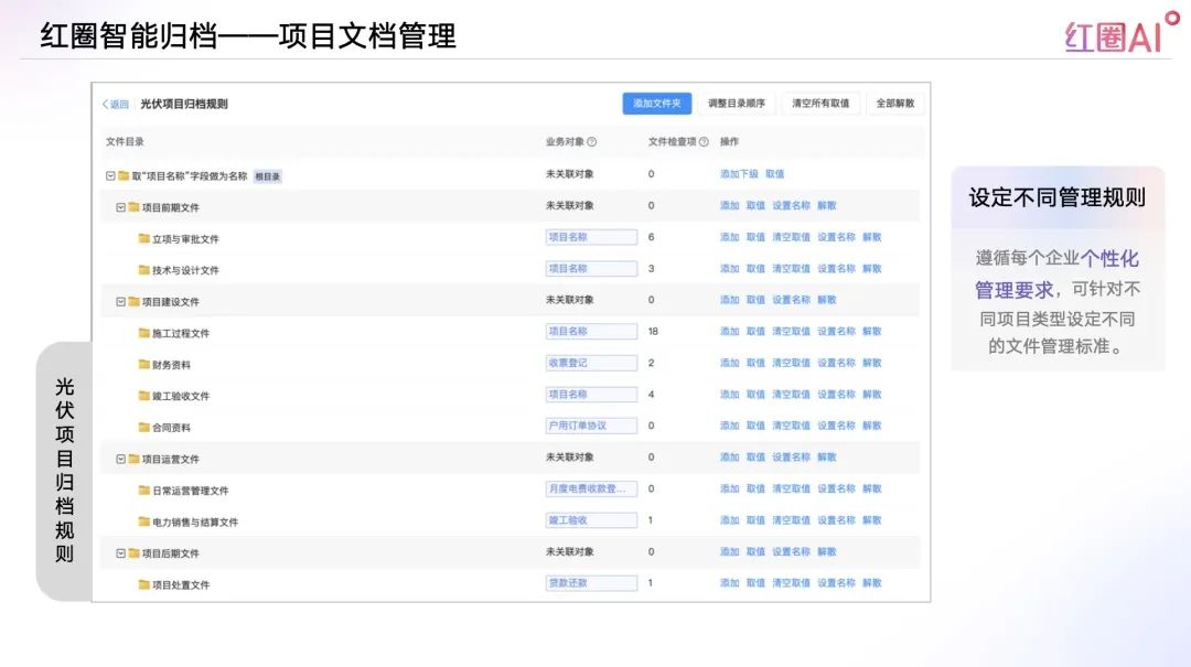 AI可根據(jù)遵循每個企業(yè)個性化管理要求,針對不同項目類型設定不同的文件管理標準;