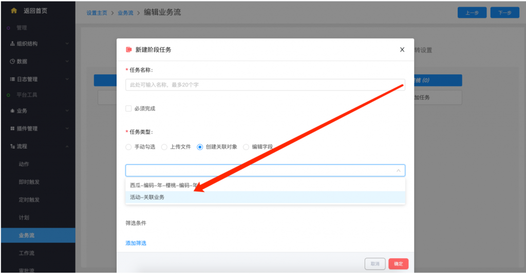 - 創(chuàng)建關(guān)聯(lián)對象類型任務(wù) 支持“活動”對象;