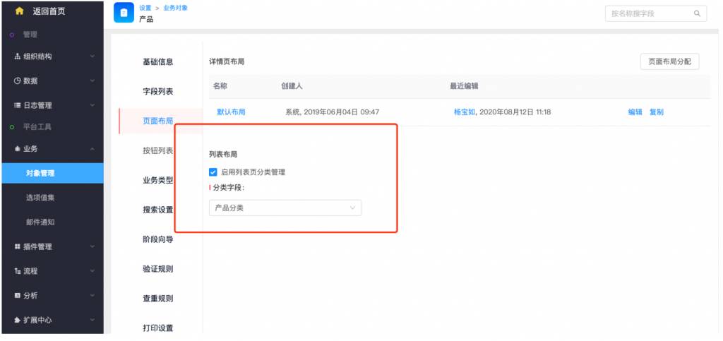 - 系統(tǒng)設(shè)置——業(yè)務(wù)——對象管理——頁面布局——列表布局