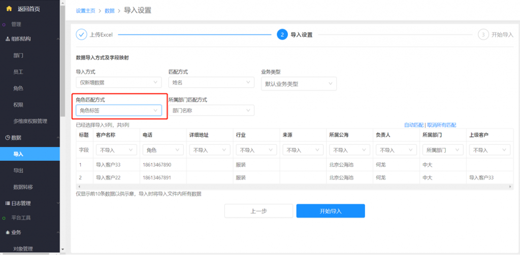 導(dǎo)入員工數(shù)據(jù)時,支持按中文導(dǎo)入角色,多角色用豎線“|”分隔