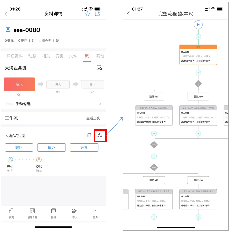 移動端審批流組件中,可以查看全流程,與網(wǎng)頁端一致