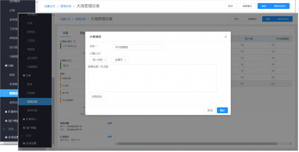 管理總表可在配置時,增加計算指標(biāo)列,對已有指標(biāo)進(jìn)行基本四則運算,提升總表的分析拓展能力