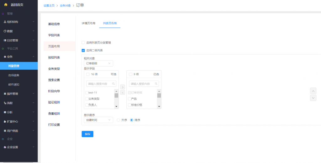 系統(tǒng)設(shè)置——業(yè)務(wù)——對象管理——布局設(shè)置——列表布局