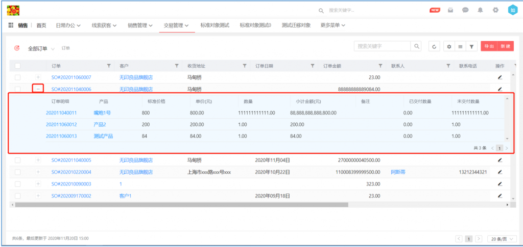 可以在合同列表查看合同的回款情況;可以在訂單列表查看訂單銷售的產(chǎn)品情況