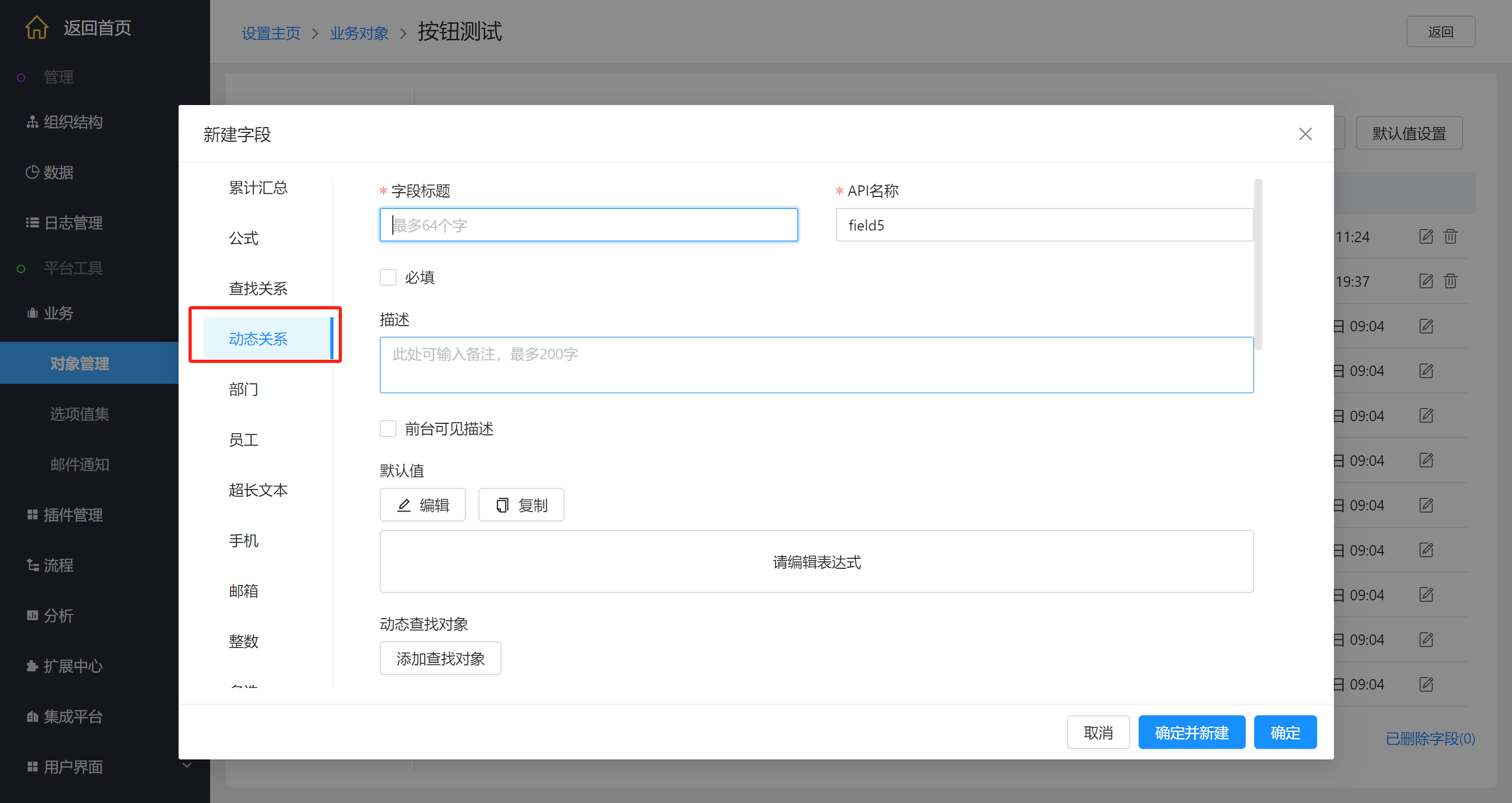 ● 增加自定義動(dòng)態(tài)關(guān)系字段