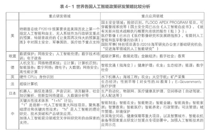 1)國際比較:各國人工智能戰(zhàn)略與政策各有重點(diǎn)。中國人工智能政策聚焦于實(shí)現(xiàn)人工智能領(lǐng)域的產(chǎn)業(yè)化,助力中國的制造強(qiáng)國政策。