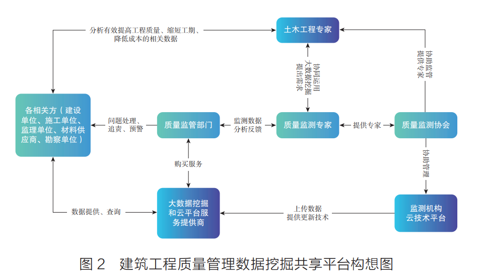建立基于大數據挖掘的數據共享平臺,使質量相關數據能夠在相關各方之間有效地傳輸與使用,進而提高企業工程質量管理的水平及政府監管效率。
