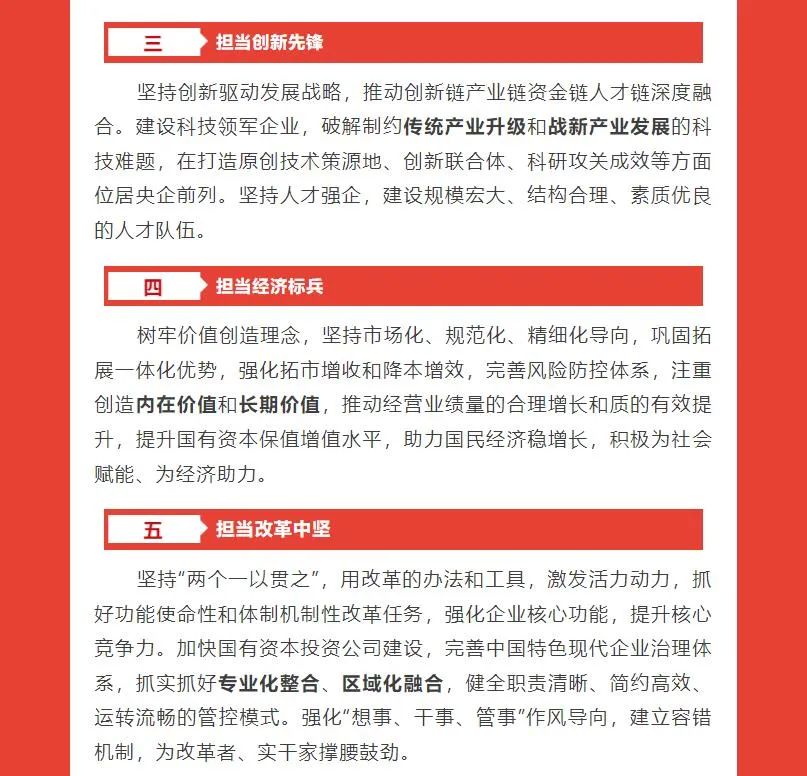 此前,國家能源集團發展戰略為“一個目標、三型五化、七個一流”。一個目標是指建設具有全球競爭力的世界一流能源集團;三型五化是指打造創新型、引領型、價值型企業,推進清潔化、一體化、精細化、智慧化、國際化發展;七個一流是指實現安全一流、質量一流、效益一流、技術一流、人才一流、品牌一流和黨建一流。
