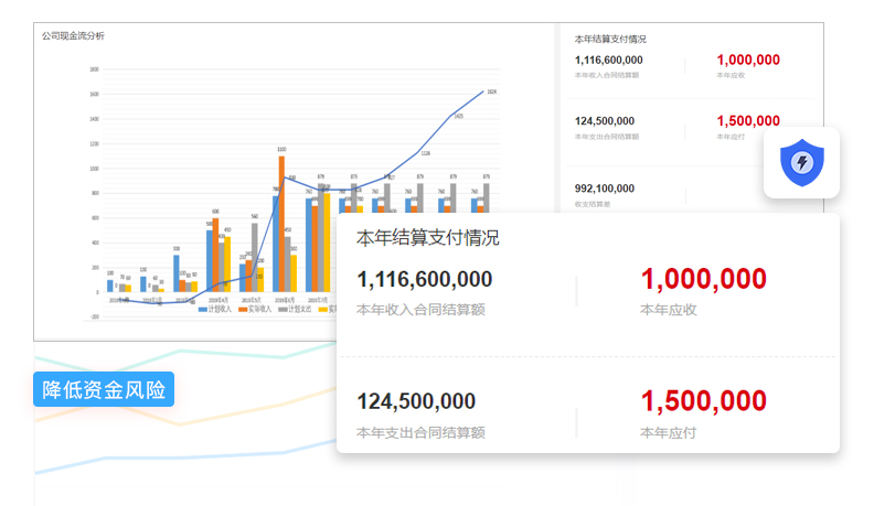 以前,財務用EXCEL表單記錄項目資金進出情況,數據匯總不及時、不準確、不互通,老板線下審批付款沒有數據參照,財務也沒有系統,雙方數據割裂,容易導致收支失衡,引起資金鏈斷裂風險。如今,公司通過系統建立了項目付款計劃,隨時關注月度付款計劃執行情況,到期應付、到期未付等關鍵指標也清晰可見。