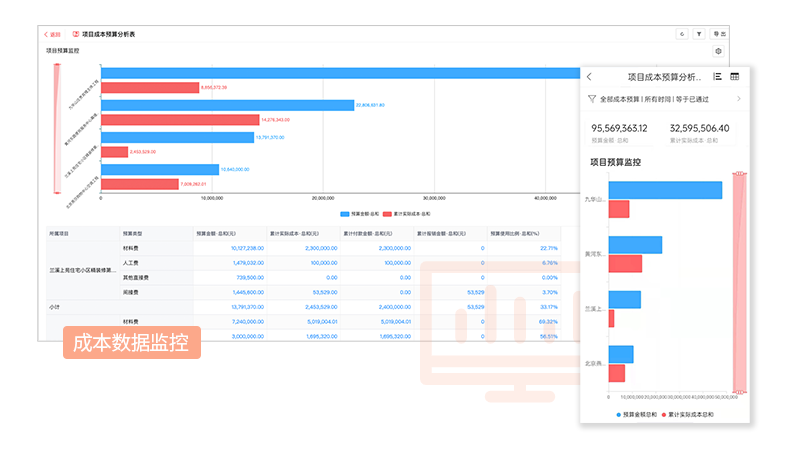 紅圈系統(tǒng)能夠完整呈現(xiàn)項目的成本計劃執(zhí)行情況。實現(xiàn)成本計劃執(zhí)行進(jìn)度、成本合同結(jié)算進(jìn)度、成本合同結(jié)算付款進(jìn)度動態(tài)可視,幫助審批節(jié)點作出合規(guī)性審批判斷。