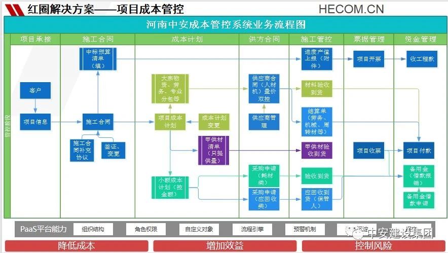 中安集團(tuán)深知:通過成本管理信息化的全覆蓋,能夠提升集團(tuán)公司總部型機(jī)關(guān)的管理能力和服務(wù)水平,繼而培養(yǎng)了團(tuán)隊的成本管理意識,各項目真正做到有目標(biāo)、有過程、保結(jié)果。